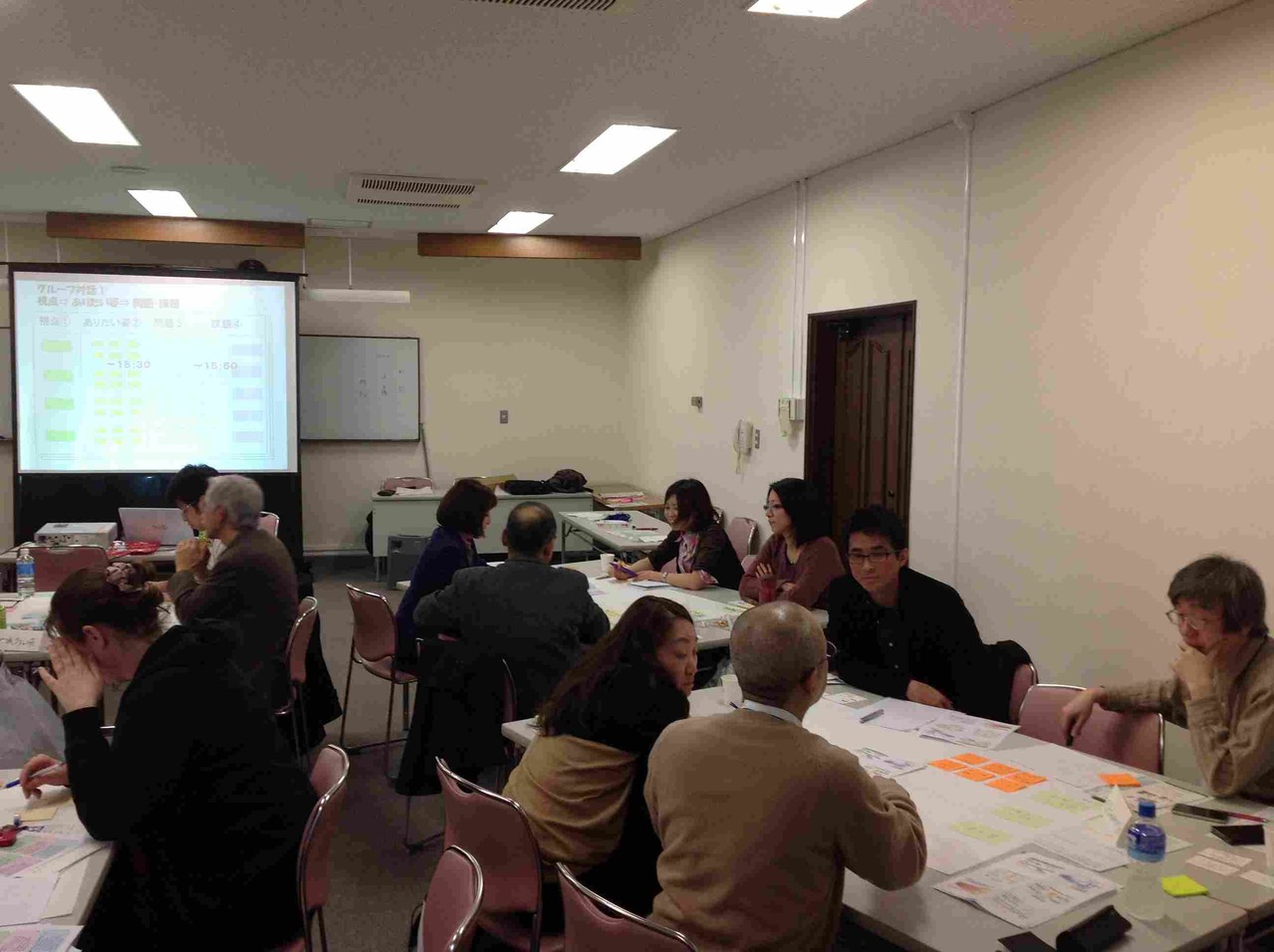『愉しく未来をつくる会』は、教育の未来、食とエネルギー、地域コミュニティー、働き方、ビジョンのつくり方と広め方のテーマごとに、目指す姿と問題、課題を考えた後、今後の具体的な取組みを皆で話し合います。